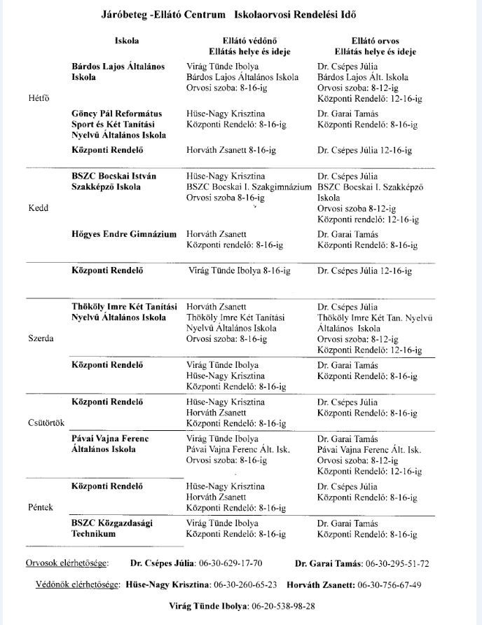 E-mail: iskolaorvos@szoboszlorendelo.hu Tel.: 557-540 102 mellék, 557-570 102 mellék